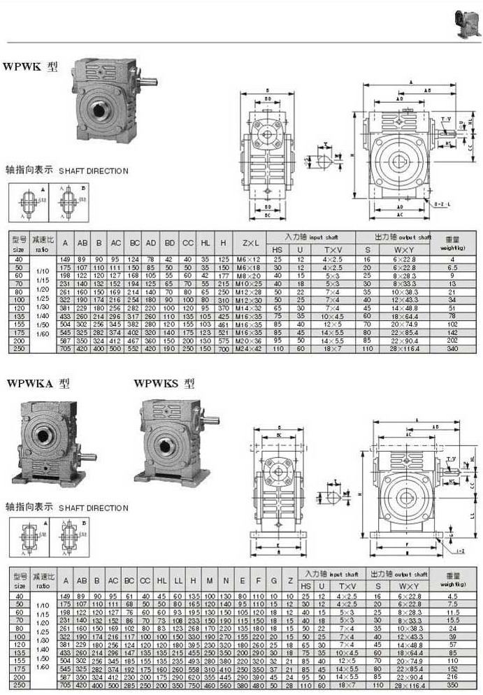 WPWK,WPWKA,WPWKS型型號參數圖表